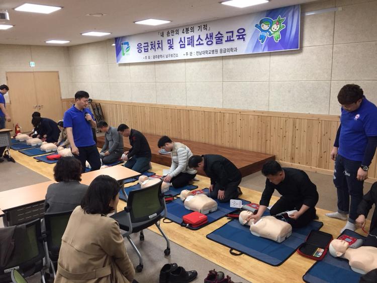 ±¤ÁÖ ³²±¸(±¸Ã»Àå ±èº´³»)´Â ±æ°Å¸® µî ÀÏ»ó»ýȰ ¼Ó¿¡¼ ÀÀ±Þ ȯÀÚ°¡ ¹ß»ýÇÒ °æ¿ì ÇöÀå¿¡¼ ÀÀ±Þ óġ°¡ ½Å¼ÓÇÏ°Ô ÀÌ·ïÁöµµ·Ï Çϱâ À§ÇØ ÁֹεéÀ» ´ë»óÀ¸·Î ÇÏ´Â ÀÀ±Þóġ ±³À°À» ºÐ±â¿¡ Çѹø¾¿ ½Ç½ÃÇϱâ·Î Çß´Ù.