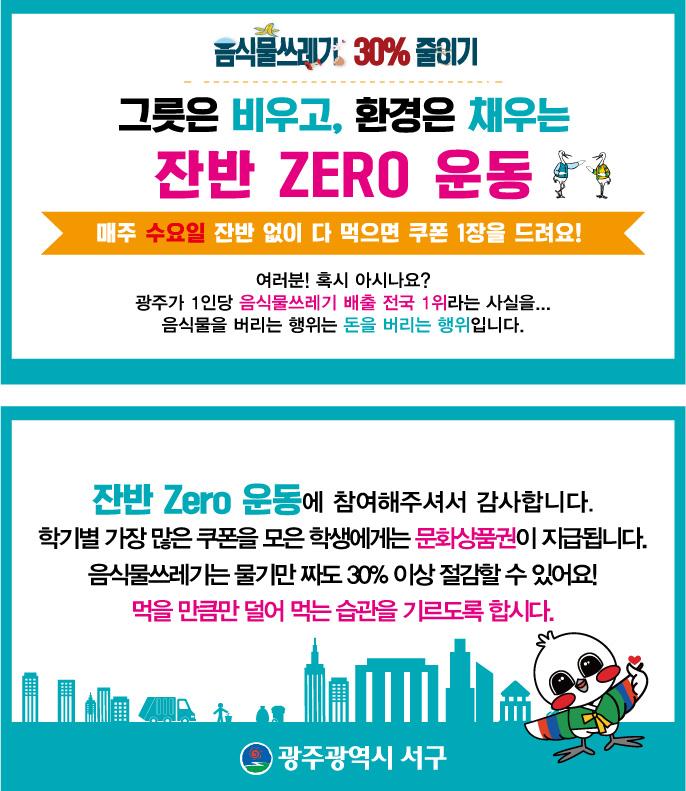 ¼±¸Ã» °ü°èÀÚ´Â ¡°ÀÜ¹Ý Zero ¿îµ¿Àº Çб³ ÇöÀå¿¡¼ À½½Ä¹°¾²·¹±â ÁÙÀ̱⠿À» È®»ê½Ã۰í Çлý ½º½º·Î ȯ°æÀ» ¹è·ÁÇÑ ¹Ù¸¥ ½Ä½À°üÀ» °®µµ·Ï ÀÎ½Ä °³¼±À» À§ÇÑ »ç¾÷ÀÌ´Ù¡±¸ç, ¡°¸ÔÀ» ¶§´Â °Ç° »ý°¢, ¹ö¸± ¶§´Â ȯ°æÀ» »ý°¢ÇÏ¿© À½½Ä¹°¾²·¹±â¸¦ ÁÙÀÌ´Â µ¥ ¸¹Àº °ü½É°ú Àû±ØÀûÀÎ Âü¿©¸¦ ¹Ù¶õ´Ù.¡±°í ¸»Çß´Ù.