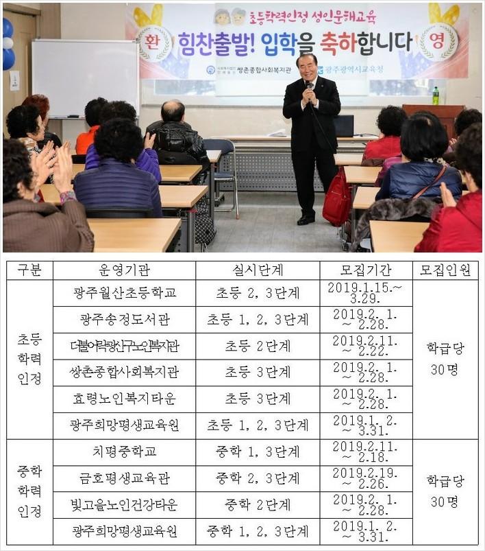 ±¤ÁÖ±¤¿ª½Ã±³À°Ã»(±³À°°¨ ÀåÈÖ±¹)ÀÌ 2019³â ÃÊ‧ÁßÇÐ ÇзÂÀÎÁ¤ ±³À°°úÁ¤ ÇнÀÀÚ¸¦ ¿î¿µ±â°üº°·Î ¸ðÁýÇÑ´Ù. ¸ðÁý±â°£Àº ±â°üº°·Î ´Ù¸£³ª 2¿ù¸»±îÁö ¸¶°¨µÇ´Â °÷ÀÌ ¸¹¾Æ ¹Ì¸® ½ÅûÇÒ Çʿ䰡 ÀÖ´Ù.