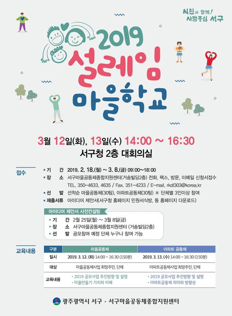 ±¤ÁÖ ¼±¸(±¸Ã»Àå ¼´ë¼®)°¡ 3¿ù 8ÀϱîÁö ¸¶À»»ç¾÷¿¡ °ü½ÉÀÖ´Â ¼±¸¹ÎÀ» ´ë»óÀ¸·Î ¡®¼³·¹ÀÓ¡¯ ¸¶À»Çб³ Âü¿©ÀÚ¸¦ ¸ðÁýÇÑ´Ù.