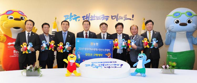 ±¤ÁÖ±¤¿ª½Ã¿Í 2019±¤ÁÖ¼¼°è¼ö¿µ¼±¼ö±Ç´ëȸ Á¶Á÷À§¿øÈ¸´Â 20ÀÏ ¿ÀÈÄ ½Ãû 3Ãþ Á¢°ß½Ç¿¡¼ ³óÇù±¤ÁÖÁö¿ªº»ºÎ¿¡ ¡®±¤ÁÖ¼ö¿µ´ëȸ ÀÔÀå±Ç ±¸¸Å¿¡ µû¸¥ ÀÔÀå±Ç ±¸¸Å »çÀü¿¹¾àÁõ¼¡¯¸¦ Àü´ÞÇß´Ù.