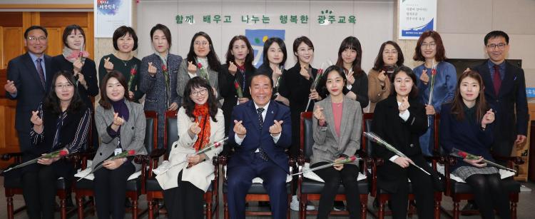 ±¤ÁÖ±¤¿ª½Ã±³À°Ã»(±³À°°¨ ÀåÈÖ±¹)ÀÌ 8ÀÏ ¼¼°è ¿©¼ºÀÇ ³¯À» ¸ÂÀÌÇØ ÀåÈÖ±¹ ±³À°°¨ÀÌ ¿©¼º Á÷¿øµéÀ» °Ý·ÁÇÏ´Â ¶æ±íÀº ½Ã°£À» °¡Á³´Ù°í ¹àÇû´Ù.