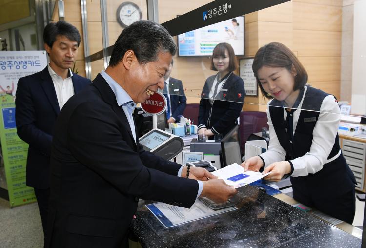 ¼´ë¼® ¼±¸Ã»ÀåÀÌ ±¤ÁÖ±¤¿ª½Ã¿¡¼ ÃßÁøÇÏ´Â ±¤ÁÖ»ó»ýÄ«µå ÀÌ¿ë Ȱ¼ºÈ ¾÷¹«Çù¾àÀ» ü°áÇϰí, 21ÀÏ ¼±¸¿¡¼´Â ù ¹øÂ°·Î ±¤ÁÖ»ó»ýÄ«µå¸¦ ¹ß±Þ¹Þ¾Ò´Ù.