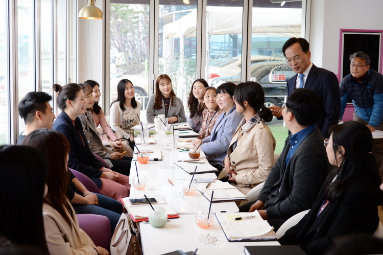 ¹Ý¸é, 8~9±Þ °øÁ÷ÀÚ°¡ Ä«Æä¿¡¼ ÁøÇàÇÑ ÇູÇÑ Á÷Àå ¸¸µé±â¿Í ¡®¸¾ÆíÇѱ¤»ê ¾Û ºÎ¼º° ¿¬°è Ȱ¿ë¹æ¾È¡¯Àº ÀÚÀ¯°úÁ¦·Î, ¿øÇÏ´Â °øÁ÷ÀÚ°¡ °³ÀÎ ÀÚ°ÝÀ¸·Î Âü°¡ÇØ ÀÚ½ÅÀÇ ÀǰßÀ» º¸Å´ ¹æ½ÄÀ¸·Î Åä·ÐÀÌ ÁøÇàµÆ´Ù.