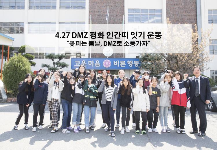 ±¤ÁÖ µ¿¾Æ¿©ÀÚÁßÇб³(±³Àå Á¤º´±â)°¡ ¡®DMZ ÆòÈÀΰ£¶ì ¿îµ¿¡¯¿¡ Àû±Ø Âü¿©Çϱâ·Î Çß´Ù. ¡®ÆòÈÀΰ£¶ì Àձ⡯´Â 4¡¤27 ³²ºÏÁ¤»óȸ´ã 1ÁÖ³âÀ» ¸ÂÀÌÇØ ¼¼°è À¯ÀÏÀÇ ºÐ´Ü±¹°¡ÀÎ Çѹݵµ Æòȸ¦ À§ÇØ ¡®²ÉÇÇ´Â º½³¯, DMZ·Î ¼Òdz°¡ÀÚ¡¯´Â À̸§À¸·Î Áغñ°¡ ÁøÇàµÇ°í ÀÖ´Ù.