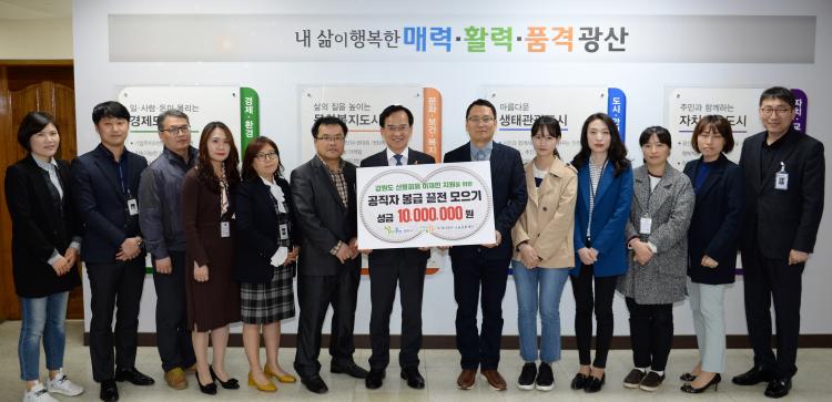 Áö³ 4³â µ¿¾È 386¸í °øÁ÷ÀÚ°¡ Âü¿©ÇØ ºÀ±Þ ³¡ÀüÀ¸·Î ¸¶·ÃÇÑ ±â±ÝÀº ¾à 2,360¸¸¿øÀ¸·Î ±â±Ý ÀϺθ¦ °¿ø »êºÒ ÀÌÀç¹Î µ½±â¿¡ ¾²ÀÚ´Â ÀǰßÀÌ Âü¿© °øÁ÷ÀÚ Áß¿¡¼ ³ª¿Ô°í, ´Ù¸¥ Âü¿© °øÁ÷ÀÚµéÀÇ ³íÀǸ¦ °ÅÃÄ À̳¯ Àü´Þ½ÄÀº ¸¶·ÃµÆ´Ù. °øÁ÷ÀÚµéÀ» ´ë½ÅÇØ Åõ°Ô´õ±¤»ê³ª´®¹®ÈÀç´ÜÀÌ »êºÒ ÇÇÇØ Áö¿ª Áß »ó´ëÀûÀ¸·Î µµ¿òÀÇ ¼Õ±æÀÌ ÀûÀº °¿øµµ °¸ª½Ã ¿Á°è¸¶À»¿¡ ¼º±ÝÀ» Àü´ÞÇÒ °èȹÀÌ´Ù.