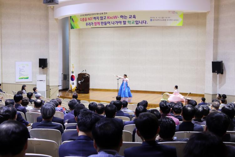 ±¤ÁÖ±¤¿ª½Ã±³À°Ã»(±³À°°¨ ÀåÈÖ±¹)ÀÌ À¯¡¤ÃÊ¡¤Áß¡¤°íµîÇб³ °ü¸®ÀÚ 300¿© ¸íÀ» ÃÊÃ»ÇØ ÀϹÝÇб³¿¡¼ÀÇ Àå¾ÖÇлý ÅëÇÕ±³À° °È ¹× ±³À°±Ç º¸Àå È®´ë¿¡ ´ëÇÑ °ü¸®ÀÚµéÀÇ Àû±ØÀûÀÎ Áö¿øÀ» ´çºÎÇß´Ù. ¶ÇÇÑ Æ¯¼ö±³À° °ü·Ã º£½ºÆ®¼¿·¯ ÀÛ°¡ÀÎ °ü³» ±³»ç, ¹ß´ÞÀå¾Ö°¡ ÀÖ´Â ÃʵîÇлý ¸íâ, û°¢Àå¾Ö°¡ ÀÖ´Â ±×¸² ÀÛ°¡ µîÀ» ÃÊÃ»ÇØ ÅëÇÕ±³À°¿¡ ´ëÇÑ °ø°¨´ë¸¦ Çü¼ºÇÏ´Â ½Ã°£À» °¡Á³´Ù.