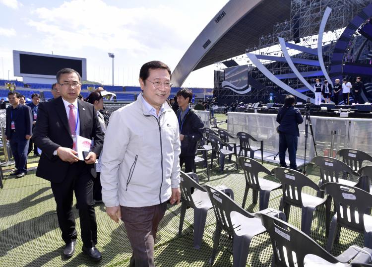 À̿뼷 ±¤ÁÖ±¤¿ª½ÃÀåÀº 28ÀÏ ¿ÀÈÄ À̳¯ Àú³á ¡®2019±¤ÁÖ¼¼°è¼ö¿µ¼±¼ö±Ç´ëȸ ¼º°ø±â¿ø ÀαⰡ¿ä ½´ÆÛÄܼƮ¡¯°¡ ¿¸®´Â ¿ùµåÄŰæ±âÀåÀ» Á÷Á¢ ã¾Æ ÇöÀåÀ» Á¡°ËÇÏ°í ¿Ïº®ÇÑ Áغñ¸¦ ´çºÎÇß´Ù.