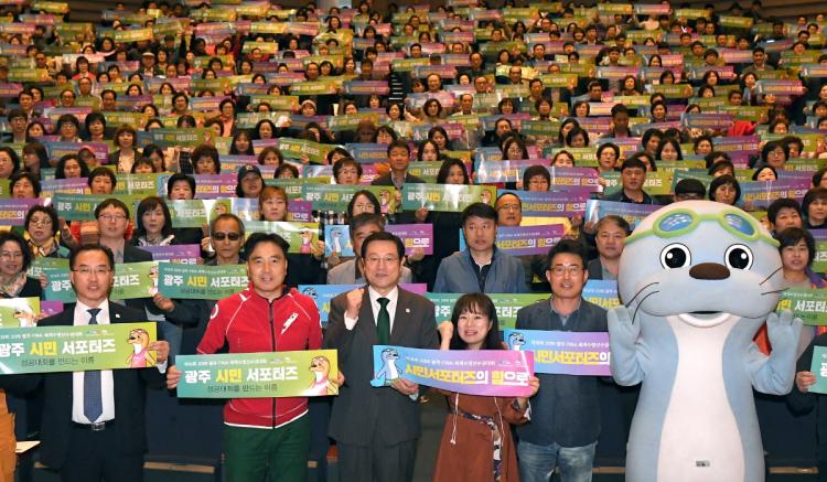 ½Ã¹Î¼Æ÷ÅÍÁî´Â ¼ö¿µ´ëȸ È«º¸¸¦ ÅëÇÑ ºÕ Á¶¼º°ú °¢±¹ ¼±¼ö´ÜÀÇ È¯¿µ¡¤È¯¼Û, °æ±âÀåÀÀ¿ø, °ü±¤¾È³» µî ´Ù¾çÇÑ È°µ¿À» ÅëÇØ ¼±¼ö´Ü°ú ¹æ¹®°´¿¡°Ô µû¶æÇϰí Ä£ÀýÇÑ ±¤ÁÖ À̹ÌÁö¸¦ Á¦°øÇÏ´Â µî ´ëȸ¼º°øÀÇ Áß¿äÇÑ ¿ªÇÒÀ» ´ã´çÇÏ°Ô µÈ´Ù.