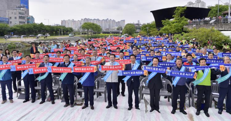 Çà»ç¿¡¼ Âü°¡ÀÚµéÀº ¡ã¼ö¿µ¼±¼ö±Ç ´ëȸ ¼º°ø ±â¿ø ¹× ±¤ÁÖõ °¡²Ù±â Âü¿© ¡ã±¤ÁÖõ Á¤ÈȰµ¿ Çà»ç¸¦ ¹ü½Ã¹Î Ŭ¸° ±¤ÁÖ Ä·ÆäÀÎÀ¸·Î Àü°³ ¡ã¼¼°è ¼ö¿µ¼±¼ö±Ç´ëȸ ¸¶½ºÄÚÆ® ¼ö¸®¿Í ´ÞÀ̰¡ ¾È½ÉÇÏ°í »ì ¼ö ÀÖ´Â ±¤ÁÖõ ¼ö·®È®º¸, ¼öÁú°³¼±, »ýÅÂÇÏõ º¹¿ø ¡ã±¤ÁÖõÀÇ »ýź¸Àü°ú º¹¿øÀ» À§ÇÑ ÀÚ¿¬º¸È£ Ȱµ¿ µîÀ» ´ÙÁüÇÏ´Â ¿ì¸®ÀÇ ´ÙÁüÀ» ³¶µ¶ÇÑ µÚ À̿뼷 ½ÃÀå²² Àü´ÞÇß´Ù.