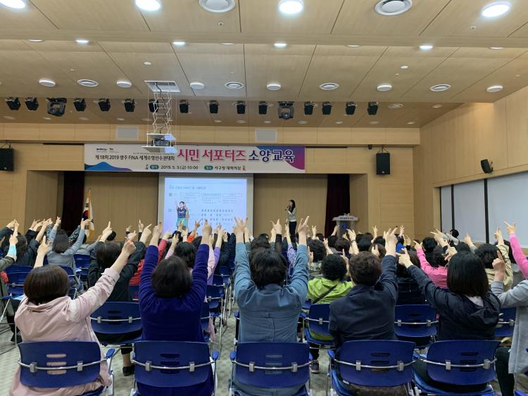±¤ÁÖ ¼±¸(±¸Ã»Àå ¼´ë¼®)°¡ 2019±¤ÁÖ¼¼°è¼ö¿µ¼±¼ö±Ç´ëȸ¸¦ ¾ÕµÎ°í ´ëȸ±â°£ Ȱµ¿ÇÒ ½Ã¹Î ¼Æ÷ÅÍÁî ±³À°À» ½Ç½ÃÇÑ´Ù.