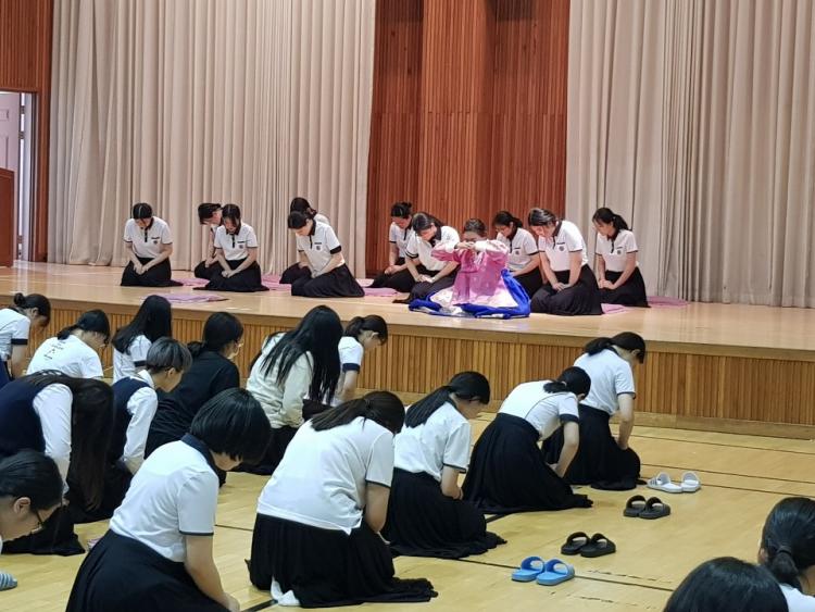 ¹®Á¤¿©ÀÚ°íµîÇб³(±³Àå ±è»óµ·)´Â 2Çгâ ÇлýµéÀ» ´ë»óÀ¸·Î Áö³ 13ÀÏ(¿ù) ¿ÀÈÄ 2½Ã40ºÐºÎÅÍ °´ç¿¡¼ ¡®ÀüÅë ¼º³â·Ê(°è·Ê)¡¯¸¦ °¡Á³´Ù.