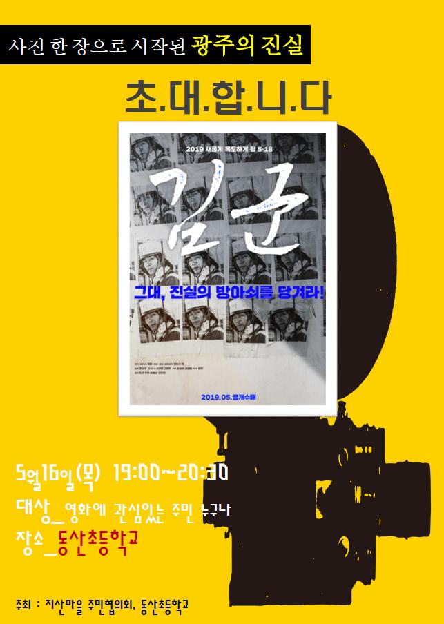 ±¤ÁÖ µ¿±¸(ûÀå ÀÓÅÃ) Áö»ê2µ¿Àº 5¡¤18±¤ÁÖ¹ÎÁÖȿ 39ÁÖ³âÀ» ¸Â¾Æ ¿À´Â 16ÀÏ 5¡¤18À» ´Ù·é ¿µÈ ¡®±è±º¡¯ ½Ã»çȸ¸¦ °³ÃÖÇÑ´Ù°í ¹àÇû´Ù.