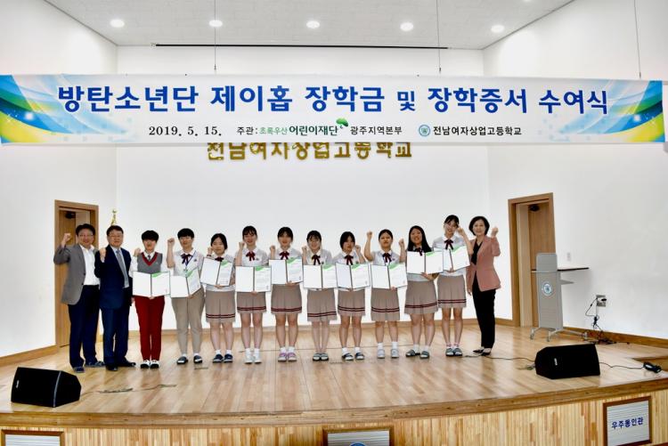 Àü³²¿©ÀÚ»ó¾÷°íµîÇб³´Â 5³â°£ ¡®¹æÅº¼Ò³â´Ü Á¦ÀÌÈ© ÀåÇÐ±Ý Áö¿ø»ç¾÷¡¯À» ½Ç½ÃÇØ ÇØ¸¶´Ù 10¸íÀÇ Çлýµé¿¡°Ô 50¸¸¿ø¾¿ Áö¿øÇÏ°Ú´Ù°í ¹àÇû´Ù. À̳¯ Àü³²¿©ÀÚ»ó¾÷°íµîÇб³´Â ¼ºÀûÀÌ ¿ì¼öÇÑ Àú¼Òµæ°¡Á¤ Çлý ¹× ǰÇàÀÌ ´ÜÁ¤ÇÑ Çлý 10¸í(1Çгâ 4¸í, 2Çгâ 4¸í, 3Çгâ 2¸í)À» ¼±¹ßÇØ ÃÑ 500¸¸¿øÀÇ ÀåÇбݰú ÀåÇÐÁõ¼¸¦ Àü´ÞÇß´Ù.