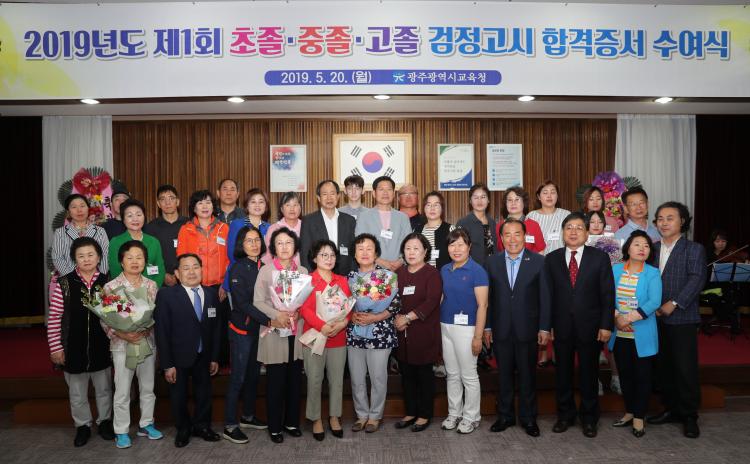 ±¤ÁÖ±¤¿ª½Ã±³À°Ã»(±³À°°¨ ÀåÈÖ±¹)Àº 20ÀÏ ¿¸° 2019³â Á¦1ȸ ÃÊ‧Áß‧°íÁ¹ °ËÁ¤°í½Ã ÇÕ°ÝÁõ¼ ¼ö¿©½Ä¿¡¼ ÁßÁ¹ ÃÖ°í·É 71¼¼ ±èº´Ç¥ ¾¾¿Í °íÁ¹ ÃÖ°í·É 71¼¼ ±èÀÏ½É ¾¾°¡ Á÷Á¢ ÇÕ°ÝÁõ¼¸¦ ¹Þ¾Æ ±³À°Ã» °ü°èÀÚµé°ú ³»ºóµé¿¡°Ô Å« ¹Ú¼ö¸¦ ¹Þ¾Ò´Ù.
