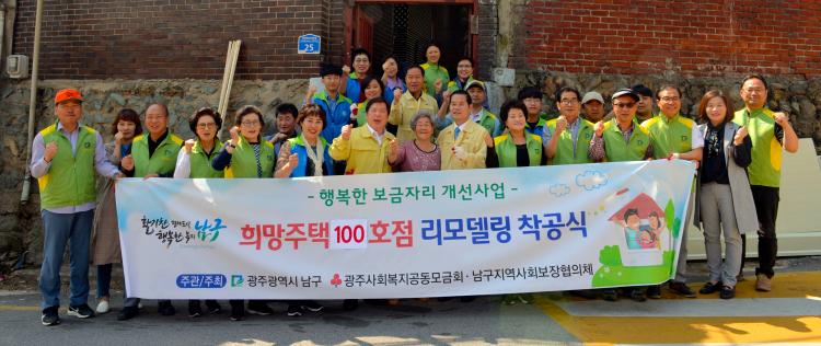±¤ÁÖ ³²±¸(±¸Ã»Àå ±èº´³»)°¡ °ü³» Ãë¾à°èÃþ °¡Á¤ÀÇ ³°°í ¿À·¡µÈ ÁýÀ» ¼ö¸®, ÇູÇÑ º¸±ÝÀÚ¸®¸¦ Á¦°øÇϱâ À§ÇØ ÃßÁøÇØ ¿Â ¡®Èñ¸ÁÁÖÅà ¸®¸ðµ¨¸µ¡¯ »ç¾÷ÀÌ ÃßÁø 6³â¸¸¿¡ 100È£Á¡À» µ¹ÆÄÇÏ´Â ¼º°ú¸¦ °Åµ×´Ù.