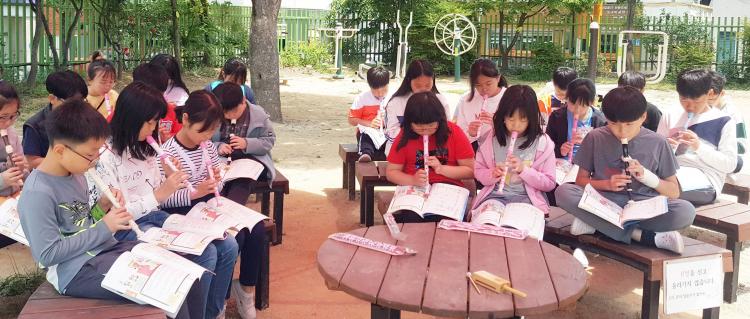 ¾ß¿Ü ±³½ÇÀ» ÀÌ¿ëÇØ ¿Â ³ó¼ºÃÊ ¼ÛÀ±È£ ÇлýȸÀåÀº ¡°½Ä¹°À» °üÂûÇÑ ¸ð½ÀÀ» ±×¸²À¸·Î Ç¥ÇöÇÏ´Â °úÇмö¾÷°ú ¾î¿ï¸²À» »ý°¢ÇÏ¸ç ¸®ÄÚ´õ ÇÕÁÖ¸¦ ÇÑ À½¾Ç¼ö¾÷À» ¾ß¿Ü±³½Ç¿¡¼ ÇÑ °ÍÀÌ Àλó±í¾ú´Ù¡±°í ¸»Çß´Ù. Çб³¸¦ °ø¿ø»ï¾Æ ¹æ¹®ÇÏ´Â Áö¿ª ÁֹεéÀº ¡°Å¹ Æ®ÀÎ ÇÏ´ÃÀ» ¹è°æ»ï¾Æ ¾ß¿Ü±³½Ç¿¡¼ ¼±»ý´Ô°ú ÇлýµéÀÌ »ï»ï¿À¿À ¸ð¿© ÇÔ²² ¿ôÀ¸¸ç °øºÎÇÏ´Â ¸ð½ÀÀ» º¼ ¼ö ÀÖ¾î ±âºÐÀÌ ÁÁ¾Ò´Ù¡±°í ¼Ò°¨À» ¸»Çß´Ù.
