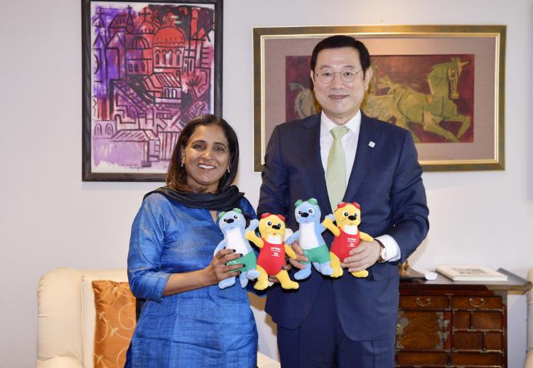 ½º¸®ÇÁ¸®¾ß ¶õ°¡³ªÅº Àεµ ´ë»çµµ ¡°Àεµ´Â ÇÏ·ç°¡ ´Ù¸£°Ô º¯È°¡ °è¼ÓµÇ°í ÀÖ´Ù. ÃÖ±Ù 5³â °£ 7% ÀÌ»óÀÇ °æÁ¦¼ºÀåÀ» ÀÌ·ç¾ú´Ù¡±°í ¼Ò°³ÇÏ°í ¡°¿ì¸®¿¡°Õ Çѱ¹ÀÇ °æÇè°ú ±â¼ú, Á¤ºÎ¿Í ±â¾÷ÀÇ ³ëÇϿ찡 ÇÊ¿äÇÏ´Ù. Àεµ¿Í Çѱ¹ÀÌ »ó»ýÇÏ´Â °ü°è·Î ¹ßÀüÇÏ´Â µ¥ ±¤ÁÖ°¡ ¿ªÇÒÀ» ÇØÁֱ⸦ ±â´ëÇÑ´Ù¡±°í ¸»Çß´Ù. ½º¸®ÇÁ¸®¾ß ´ë»ç´Â ¶Ç Àεµ µµ½Ã¿Í ±¤Áֽà °£ÀÇ ÀڸŰῬÀ» Àû±Ø ÃßÁøÇϰڴٴ ¶æµµ ¹àÇû´Ù.