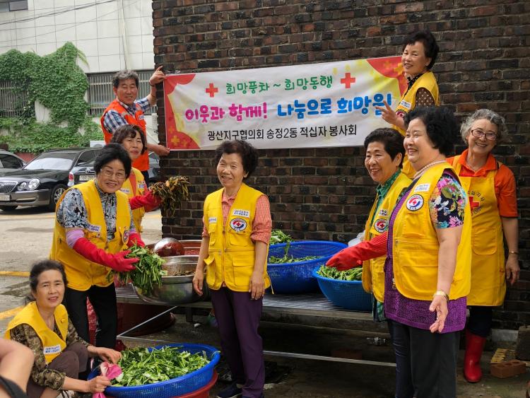±¤»ê±¸ ¼ÛÁ¤2µ¿ Àû½ÊÀÚºÀ»çȸ(ȸÀå ±è³²¶õ)°¡ 11ÀÏ ¼Ò¸Á±³È¸ ÁÖÂ÷Àå¿¡¼ ¡®»ç¶ûÀÇ ¿¹«±èÄ¡ ³ª´® Çà»ç¡¯¸¦ ¿°í, ±èÄ¡¸¦ ´ã°¡ Ȧ¸ö ¾î¸£½Å ¼¼´ë µî µ¹º½ ÀÌ¿ô 30°¡±¸¿¡ Àü´ÞÇß´Ù.