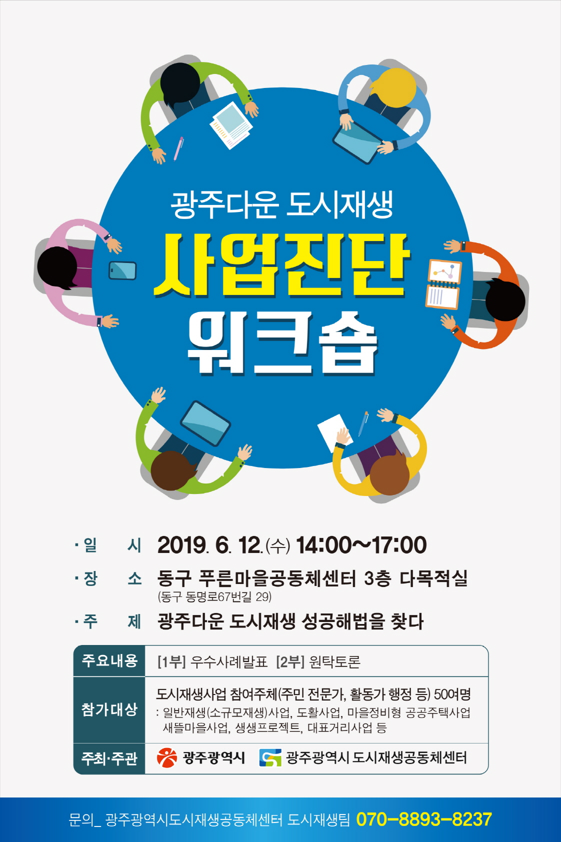 ±¤ÁÖ±¤¿ª½Ã¿Í ±¤ÁÖµµ½ÃÀç»ý°øµ¿Ã¼¼¾ÅÍ´Â ÇöÀç ±¤Áֽð¡ ÃßÁøÁßÀÎ 35°³ µµ½ÃÀç»ý»ç¾÷¿¡ ´ëÇÑ ÅëÇÕ°ü¸®¿Í Áö¿øÃ¼°è¸¦ ¸¶·ÃÇϱâ À§ÇØ 12ÀÏ µ¿±¸ Ǫ¸¥¸¶À»°øµ¿Ã¼¼¾ÅÍ¿¡¼ ¡®±¤ÁÖ´Ù¿î µµ½ÃÀç»ý »ç¾÷Áø´Ü¿öÅ©¼ó¡¯À» °³ÃÖÇÑ´Ù.
