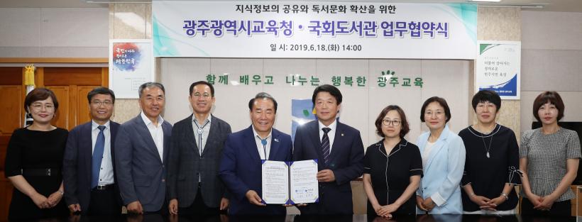 ±¤ÁÖ±¤¿ª½Ã±³À°Ã»(±³À°°¨ ÀåÈÖ±¹)ÀÌ 18ÀÏ ¿ÀÈÄ2½Ã ±¹È¸µµ¼°ü°ú Áö½ÄÁ¤º¸ °øÀ¯ ¹× µ¶¼¹®È È®»êÀ» À§ÇÑ Æ÷°ýÀû ¾÷¹«Çù¾àÀ» ü°áÇß´Ù.