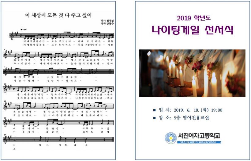 ¼Áø¿©ÀÚ°íµîÇб³(±³Àå ¹®È«ÁÖ)´Â Áö³ 6¿ù 18ÀÏ(È) ¡®2019Çг⵵ ³ªÀÌÆÃ°ÔÀϼ±¼½Ä¡¯À» °³ÃÖÇß´Ù.