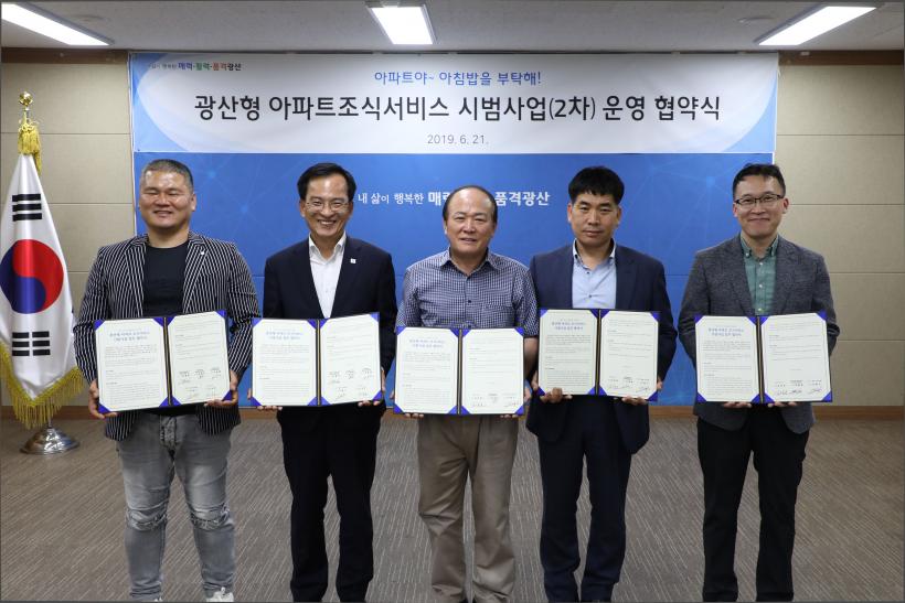 ±¤»ê±¸(±¸Ã»Àå ±è»ïÈ£)¿Í B.K FOOD(ÁÖ)°¡ ¡®±¤»êÇü ¾ÆÆÄÆ® Á¶½Ä ¼ºñ½º 2Â÷ ½Ã¹ü»ç¾÷¡¯ Âü°¡ ¾ÆÆÄÆ® ÁֹδëÇ¥¿Í ±¸Ã»¿¡¼ Áö³ 21ÀÏ Çù¾à½ÄÀ» °®°í, ´ÙÀ½´Þ 1ÀϺÎÅÍ º»°ÝÀûÀÎ ¼ºñ½º¿¡ µé¾î°¡±â·Î Çß´Ù.