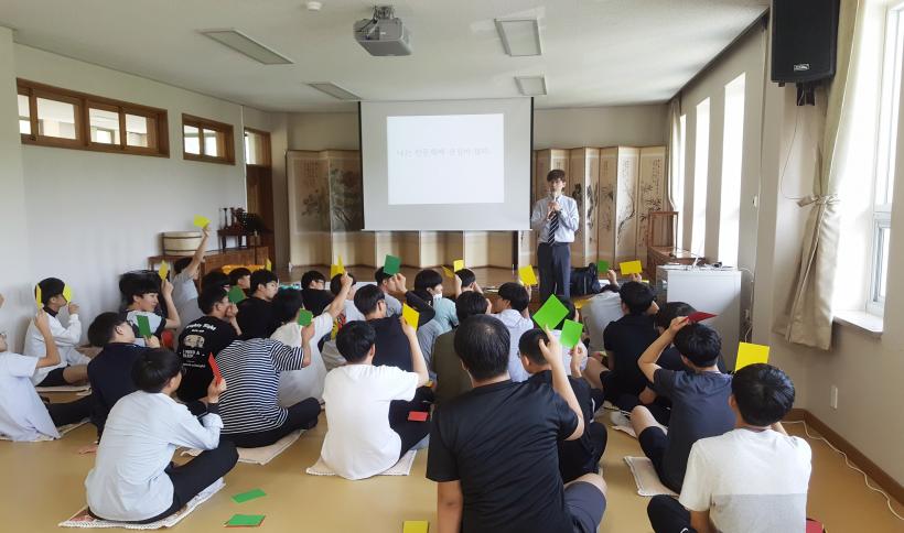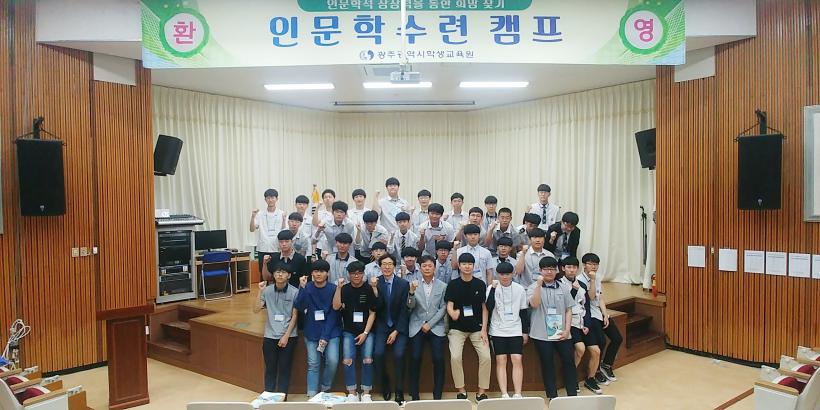 ±¤ÁÖ±¤¿ª½ÃÇлý±³À°¿ø(¿øÀå Á¶·®)Àº Àι®Çп¡ °ü½É ÀÖ´Â °í1ÇлýµéÀ» ´ë»óÀ¸·Î Á¦1±â ¡®Àι®Çмö·ÃÄ·ÇÁ¡¯¸¦ °³ÃÖÇß´Ù. Áö³ 6¿ù 17ÀÏ(¿ù)ºÎÅÍ 19ÀÏ(¼ö)±îÁö 2¹Ú 3ÀÏ °úÁ¤À¸·Î ¡®Àι®ÇÐÀû »ó»ó·ÂÀ» ÅëÇÑ Èñ¸Á ã±â¡¯¶ó´Â Á¦¸ñÀ¸·Î °íµîÇб³ 1Çгâ Çлý Áß Çб³ÀåÀÇ ÃßõÀ» ¹ÞÀº 8°³±³ 34¸íÀÇ ÇлýÀ» ´ë»óÀ¸·Î ÁøÇàµÆ´Ù.