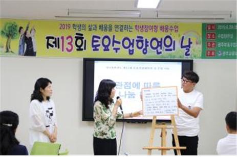 ±¤ÁÖ±³À°´ëÇб³±¤Áֺμ³ÃʵîÇб³(±³Àå ÃÖ¿µ¼ø)°¡ Á¦13ȸ Åä¿ä¼ö¾÷Ç⿬ÀÇ ³¯À» ¿î¿µÇÏ¿© ±¤ÁÖÁö¿ª ¹× Àü³²Áö¿ª ¼±»ý´ÔµéÀ» ´ë»óÀ¸·Î ¼ö¾÷À» °ø°³ÇÏ°í ³ª´®ÀÇ ½Ã°£À» °¡Á³´Ù.