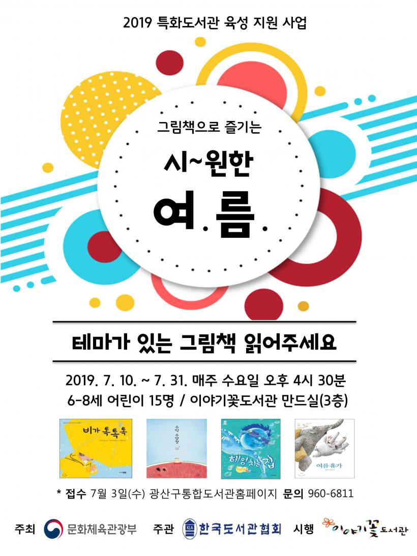 ÇÁ·Î±×·¥Àº 7¿ù ¡®±×¸²Ã¥À¸·Î Áñ±â´Â ½Ã¿øÇÑ ¿©¸§¡¯À» ½ÃÀÛÀ¸·Î, 8¿ù ¡®¿µ¾î±×¸²Ã¥À¸·Î ³îÀÚ¡¯, 9¿ù ¡®´Ù°°ÀÌ ³îÀÚ~ µ¿³× ÇѹÙÄû¡¯, 10¿ù ¡®³»°¡ ÀÐÀ» Ã¥Àº ³»°¡ Á÷Á¢ °ñ¶ó¿ä!-Ã¥ ¼±Åðú ºÏÅäÅ©¡¯, 11¿ù ¡®³ª¹«¡¯¸¦ Á¦¸ñÀ¸·Î °¢°¢ ÁøÇàµÉ ¿¹Á¤ÀÌ´Ù.