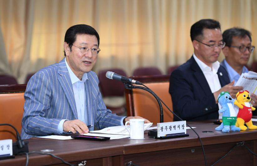 °£´ãȸ¿¡¼ ½Ã´Â ±¤ÁÖ¼ö¿µ¼±¼ö±Ç´ëȸ¿Í ±¤ÁÖÇüÀÏÀÚ¸® ÀÚµ¿Â÷°øÀå ¼³¸³, µµ½Ãöµµ 2È£¼± Âø°ø, 4Â÷ »ê¾÷Çõ¸í ¼±µµµµ½Ã, ±¤ÁÖ´Ù¿ò ºê·£µåÁ¤Ã¥ Áغñ»óȲ, ¹®È°ü±¤ ÀÎÇÁ¶ó È®Ãæ, ±¤ÁÖõ »ì¸®±â µîÀÇ ÃßÁø»óȲÀ» ¼³¸íÇϰí ÇùÁ¶¸¦ ¿äûÇß´Ù.