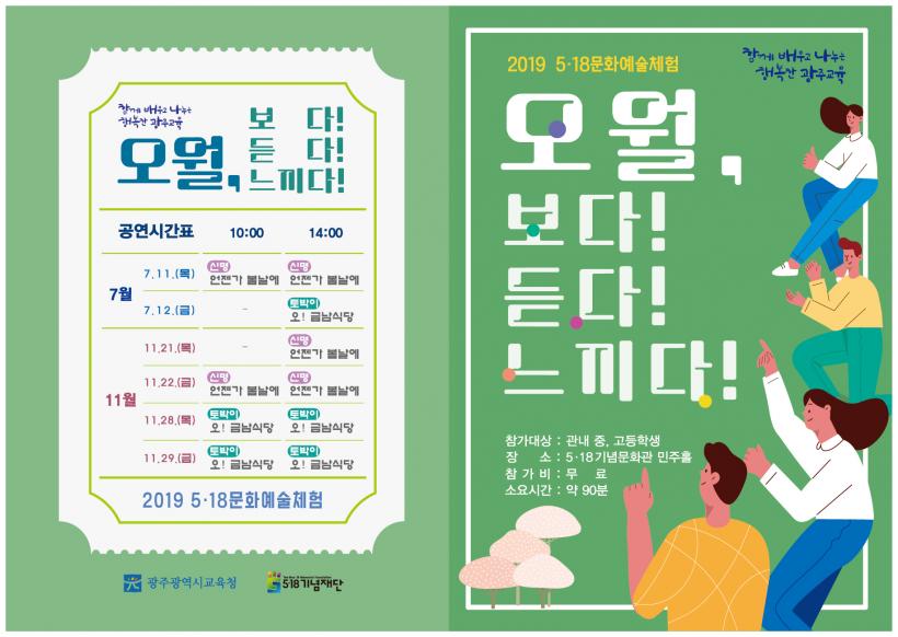 10ÀÏ ½Ã±³À°Ã»¿¡ µû¸£¸é À̹ø »ç¾÷Àº °ü³» ±³¿ø°ú Çлýµé¿¡°Ô ¹®È¿¹¼úÀ» ÅëÇÑ 5¡¤18¹ÎÁÖȿ¿¡ ´ëÇÑ ÀÌÇØ¸¦ µ½°íÀÚ ±âȹµÆÀ¸¸ç Áö¿ª ´ëÇ¥ ¿À¿ù±Ø ´ÜüÀÎ ³îÀÌÆÐ ½Å¸í(¾ðÁ¨°¡ º½³¯¿¡)°ú ±Ø´Ü Åä¹ÚÀÌ(¿À! ±Ý³²½Ä´ç)°¡ °øµ¿ ÁÖ°üÇϰí 5¡¤18±â³äÀç´ÜÀÌ °øµ¿ ÁÖÃÖÇÑ´Ù.