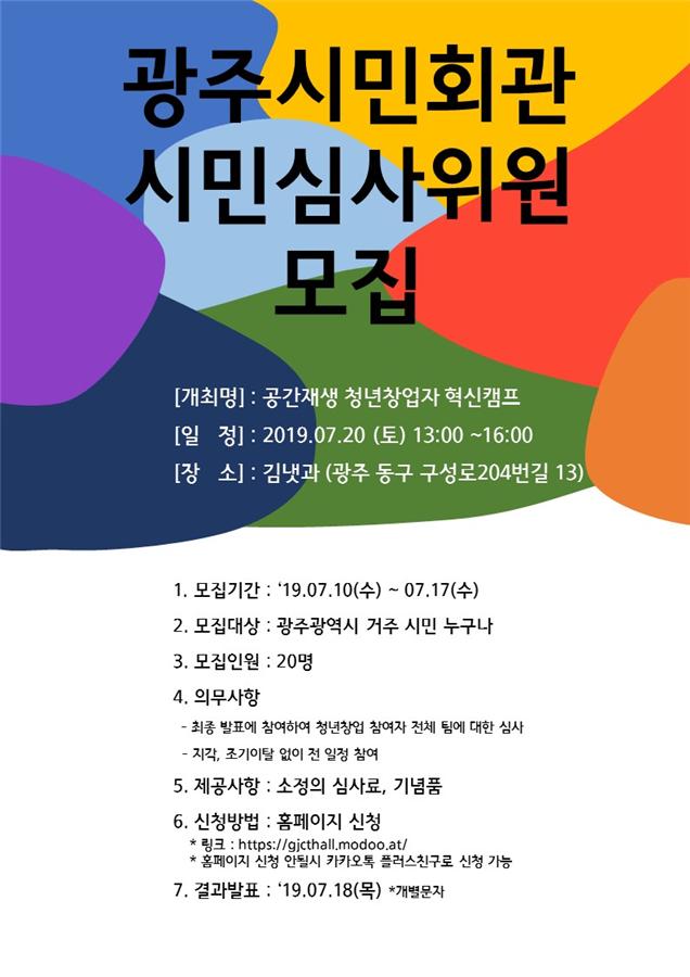 ±¤ÁÖ±¤¿ª½Ã´Â ½Ã¹Îȸ°üÀ» Ȱ¿ëÇÏ´Â ¡®°øÀ¯Àç»êȰ¿ë »çȸ½ÇÇè û³ââ¾÷ Áö¿ø»ç¾÷¡¯ÀÇ Ã»³ââ¾÷ÀÚ ¼±Á¤ ½É»ç¸¦ À§ÇØ ½Ã¹Î½É»ç´ÜÀ» ¿À´Â 17ÀϱîÁö ¸ðÁýÇÑ´Ù.