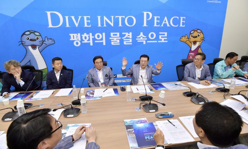 Áö¿ø´ÜÀº ±è¿ÁÁ¶ ½Ã ´ëº¯ÀÎÀ» ´ÜÀåÀ¸·Î ½Ã ´ëº¯ÀÎ½Ç Àü¡¤ÇöÁ÷ Á÷¿øµé·Î ±¸¼ºµÆÀ¸¸ç ´ëȸ Á¶Á÷À§¿øÈ¸ MPC(Main Press Center)¿¡¼ »ó½Ã ±Ù¹«ÇÏ¸ç ¾ð·ÐÀÇ ¿øÈ°ÇÑ ¼ö¿µ´ëȸ ÃëÀ縦 Áö¿øÇÏ°í ºÒÆí»çÇ×À» ÇØ¼ÒÇÒ °èȹÀÌ´Ù.