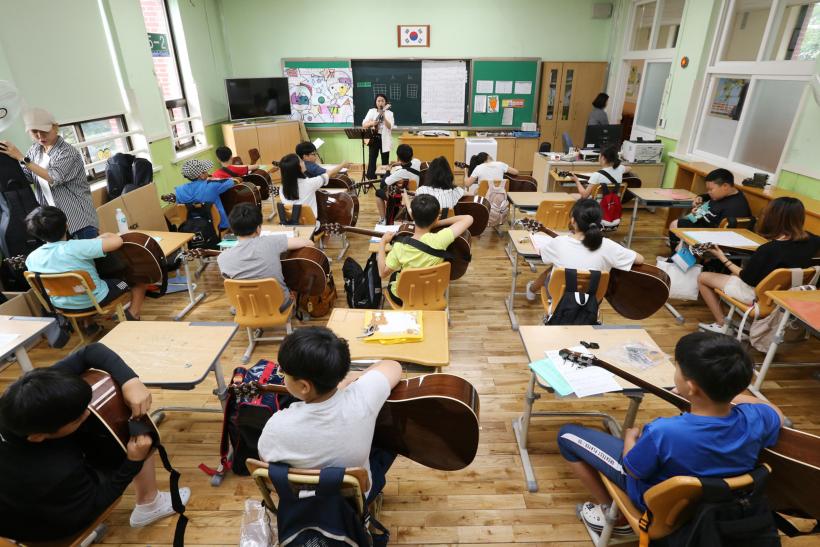 °ü³» ÃʵîÇлýµé¿¡°Ô ¾Ç±â ¹è¿òÀÇ ±âȸ¸¦ Á¦°øÇØ ¹®È°¨¼ö¼ºÀ» ³ôÀ̰í âÀÇÀûÀÎ ÀÎÀç·Î À°¼ºÇϱâ À§ÇØ ÃßÁøÇÏ´Â 1Çлý1¾Ç±â Áö¿ø»ç¾÷ÀÎ ¡®Åë±âŸ°¡ ÀÖ´Â Çູ±³½Ç¡¯ÀÌ Çб³ÇöÀå¿¡¼ ÁÁÀº ¹ÝÀÀÀ» ¾ò°í ÀÖ´Ù.