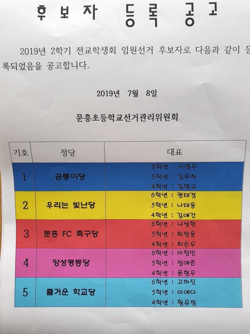 Á¤´ç¹æ½ÄÀÇ Á¦µµ´Â µ¿¾Æ¸®µéÀÌ Áß½ÉÀÌ µÅ Á¤´çÀ» ¸¸µé°í, °¢ Á¤´ç¿¡¼ Çг⺰(4,5,6Çгâ) ´ëÇ¥¸¦ °¢ 1¸í¾¿ Ã⸶½ÃÄÑ Á¤´ç¿¡ ÅõÇ¥ÇÏ´Â Á¦µµÀÌ´Ù. À̹ø ¼±°Å¿¡¼´Â ÃÑ 5°³ÀÇ Á¤´çÀÌ Ã⸶Çß´Ù. ÇDZ¸¸¦ ÁÁ¾ÆÇÏ´Â '°øÁÁ¾Æ´ç', Ƽº¼À» »ç¶ûÇÏ´Â '¿ì¸®´Âºû³´ç', Ã౸µ¿¾Æ¸® Áß½ÉÀÇ '¹®ÈïFC Ã౸´ç', ¿©³²ÆòµîÀ» ÁöÇâÇÏ´Â '¾ç¼ºÆòµî´ç'°ú ½ÅÀÔ»ý ȯ¿µÈ¸ µîÀ¸·Î Çб³¸¦ Áñ°Ì°Ô Çϰڴٴ 'Áñ°Å¿îÇб³´ç'µîÀÌ È°¹ßÇÑ ¼±°Å¿îµ¿ ÁßÀÌ´Ù.