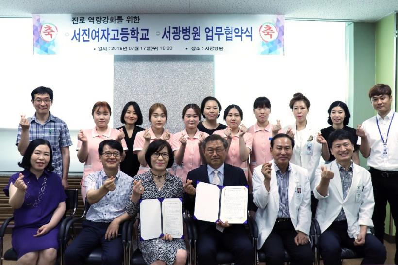 ¼Áø¿©ÀÚ°íµîÇб³(±³Àå ¹®È«ÁÖ)´Â Áö³ 7¿ù 17ÀÏ(¼ö) ¼±¤º´¿ø(°æ¿µ¿øÀå ·ù°æÁÖ)¿¡¼ ±³¿ø°ú º´¿ø °ü°èÀÚ°¡ Âü¼®ÇÑ °¡¿îµ¥ »ê¡¤ÇÐ ¿¬°è±³À° ¿î¿µ Çù¾à½ÄÀ» °³ÃÖÇß´Ù°í 18ÀÏ ¹àÇû´Ù.
