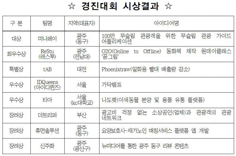 µ¿±¸´Â Áö³ 17ÀϱîÁö ¡®±¤ÁÖµ¿±¸¸¦ Çõ½ÅÇÒ Ã¢¾÷¾ÆÀ̵ð¾î¸¦ ã¾Æ¶ó¡¯´Â ÁÖÁ¦·Î °ø°³¸ðÁýÀ» ÁøÇàÇØ ¼¿ï¡¤°æ±â¡¤´ëÀü µî Àü±¹¿¡¼ 40¿© ÆÀÀÇ Âü¿© ½ÅûÀ» ¹Þ¾Ò´Ù.