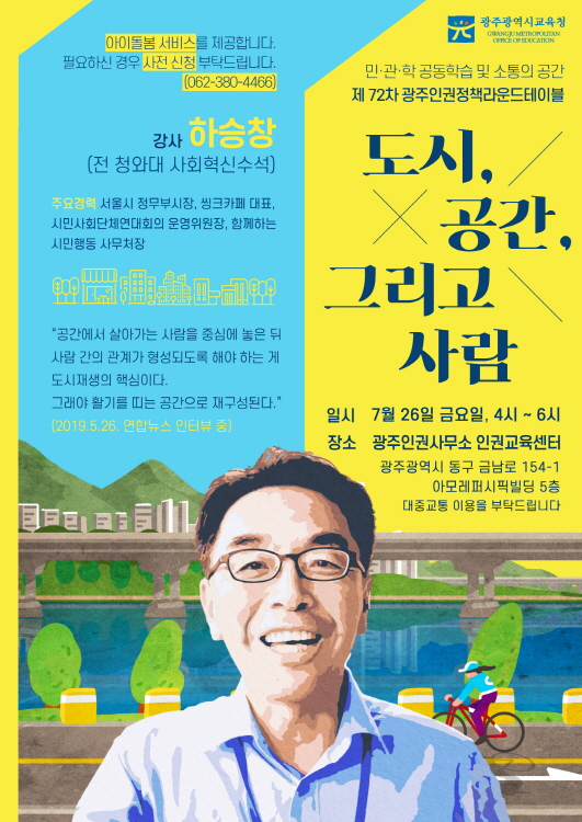 ±¤ÁÖ±¤¿ª½Ã±³À°Ã»(±³À°°¨ ÀåÈÖ±¹)ÀÌ ¿À´Â 26ÀÏ(±Ý) ¿ÀÈÄ 4½Ã ±¹°¡ÀαÇÀ§¿øÈ¸ ±¤ÁÖÀαDZ³À°¼¾ÅÍ¿¡¼ ¡®µµ½Ã, °ø°£, ±×¸®°í »ç¶÷¡¯À» ÁÖÁ¦·Î Á¦72Â÷ ÀαÇÁ¤Ã¥¶ó¿îµåÅ×À̺íÀ» °³ÃÖÇØ ÀÌ Áú¹®¿¡ ´ëÇÑ ÇØ¹ýÀ» °í¹ÎÇÑ´Ù.