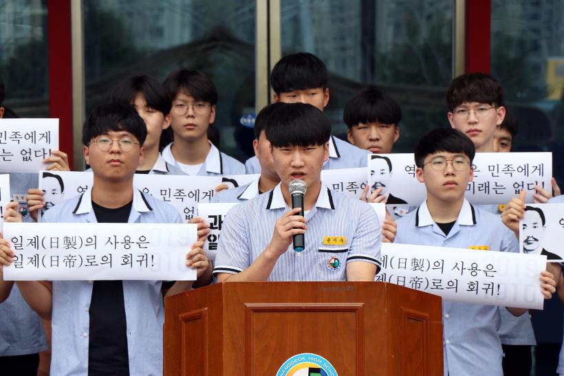 ±¤ÁÖ ±¤´ö°íµîÇб³´Â 7¿ù17ÀÏ ¡®ÀϺ» Á¦Ç° ºÒ¸Å¿îµ¿¡¯ ¼±¾ð½Ä°ú ÇÔ²² ÀϺ» Çпëǰ°ú ¹°Ç° ¹ö¸®±â ÇൿÀ» ÁøÇàÇßÀ¸¸ç ±¤ÁÖÁ¦ÀϰíµîÇб³ ÇлýµéÀº 7¿ù23ÀÏ ¹æÇнĿ¡¼ ¡°ÀϺ»Á¦Ç° ºÒ¸Å¿îµ¿¿¡ ¿ì¸® °íµîÇлýµéÀÌ Àû±Ø Âü¿©ÇÏÀÚ¡±°í Á¦¾ÈÇϰí 7¿ù 24ÀÏ(¼ö)ºÎÅÍ 1¹Ú2ÀÏ µ¿¾È ¼¿ï ÀϺ»´ë»ç°ü ¾Õ¿¡¼ ¿¸®´Â ¼ö¿äÁýȸ¿¡ Âü¿©Çϱ⵵ Çß´Ù. ±¤ÁÖ±¤¿ª½Ã Ư¼ºÈ¡¤¸¶À̽ºÅÍ°í ±³Àå´Üµµ 8¿ù5ÀÏ ¡°¸ðµç ±¤ÁÖÀÇ Æ¯¼ºÈ¡¤¸¶À̽ºÅͰí´Â Çлý½ÇÇè½Ç½À ±âÀÚÀç, ºñǰ, Àç·á¿¡ ÀϺ»Á¦Ç°À» »ç¿ëÇϰųª ±¸ÀÔÇÏÁö ¾Ê°Ú´Ù¡±°í ¹àÈù ¹Ù ÀÖ´Ù.