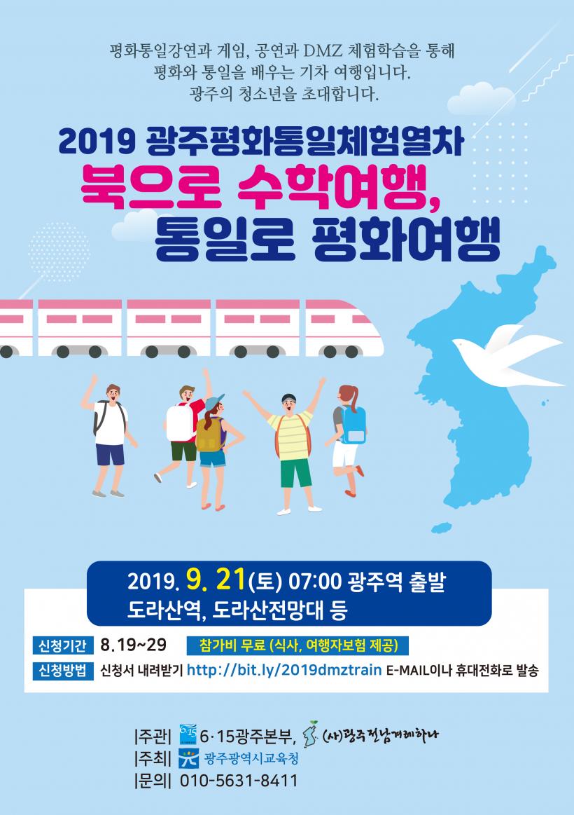 ±¤ÁÖ Ã»¼Ò³â 300¸íÀÌ ¡®±¤ÁÖ¿ª¡¯¿¡¼ ±âÂ÷¸¦ Ÿ°í ¡®DMZ µµ¶ó»ê¿ª¡¯±îÁö ¡®ÅëÀÏ¿©Ç࡯À» ¶°³´Ù. Áß‧°íµîÇлý ¶Ç´Â ÇØ´ç ¿¬·É û¼Ò³âÀÌ¸é ½ÅûÇÒ ¼ö ÀÖÀ¸¸ç ¿À´Â 8¿ù29ÀϱîÁö Âü°¡½ÅûÀ» ¹Þ´Â´Ù.