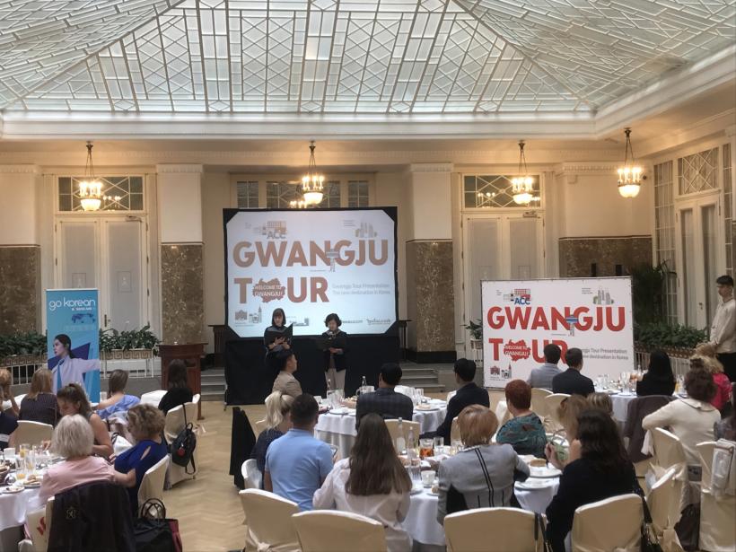 À̹ø ¼³¸íȸ´Â Çѱ¹ÀÇ »õ·Î¿î °ü±¤Áö·Î¼ ±¤ÁÖ¸¦ ¼Ò°³ÇÏ´Â ÀÚ¸®·Î, ·¯½Ã¾Æ ÃÖ´ë ±Ô¸ð ¿©Çà»çÀÎ ¾ÆÆ®Åõ¾î, ¾Æ³Ø½º, Åõ¾îÇÁ·¹½ºÆ¼ÁöŬ·´À» ºñ·ÔÇØ ¿©Çà¾÷°è °ü°èÀÚ ÃÑ 200¿© ¸íÀÌ Âü¼®Çß´Ù.