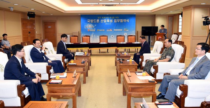 ½Ã´Â 27ÀÏ À̿뼷 ½ÃÀå°ú ¼Ò¿µ¹Î Á¦31º¸º´»ç´ÜÀå, ¹Ú»ó±Ô Çѱ¹ÀüÀÚÅë½Å¿¬±¸¿ø ºÎ¿øÀå, Á¶¹®¼ö Çѱ¹µå·Ð»ê¾÷ÁøÈïÇùȸÀå, ±èÁöÂù LIG³Ø½º¿ø¢ß ´ëÇ¥À̻簡 Âü¼®ÇÑ °¡¿îµ¥ ½Ãû ºñÁî´Ï½º·ë¿¡¼ ¡®±¹¹æµå·Ð »ê¾÷À°¼ºÀ» À§ÇÑ ¾÷¹«Çù¾à¡¯À» ü°áÇß´Ù.