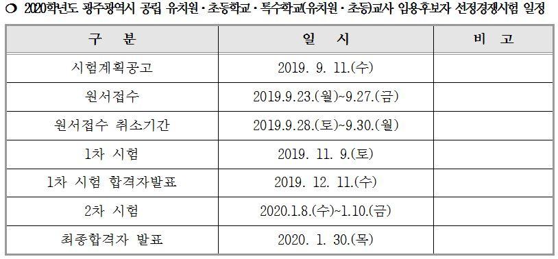 ±¤ÁÖ±¤¿ª½Ã±³À°Ã»(±³À°°¨ ÀåÈÖ±¹)Àº 2020Çг⵵ ±¤ÁÖ±¤¿ª½Ã °ø¸³ À¯Ä¡¿ø¡¤ÃʵîÇб³¡¤Æ¯¼öÇб³(À¯Ä¡¿ø¡¤Ãʵî)±³»ç ÀÓ¿ëÈĺ¸ÀÚ ¼±Á¤°æÀï½ÃÇè ½ÃÇà°èȹÀ» Áö³ 11ÀÏ(¼ö) ½Ã±³À°Ã» ȨÆäÀÌÁö¸¦ ÅëÇØ °ø°íÇÑ´Ù.
