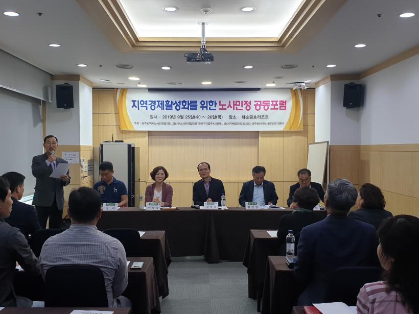 ±¤»ê±¸ ³ë»ç¹ÎÁ¤ÇùÀÇȸ(À§¿øÀå±è»ïÈ£)°¡ 25ÀÏ ±¤Áֽà ³ë»ç¹ÎÁ¤ÇùÀÇȸ¿Í ¡®Áö¿ª°æÁ¦ Ȱ¼ºÈ¸¦ À§ÇÑ ³ë»ç¹ÎÁ¤ °øµ¿Æ÷·³¡¯À» ȼø ±ÝÈ£¸®Á¶Æ®¿¡¼ °³ÃÖÇß´Ù.