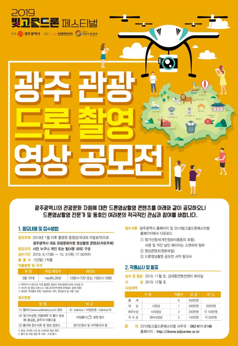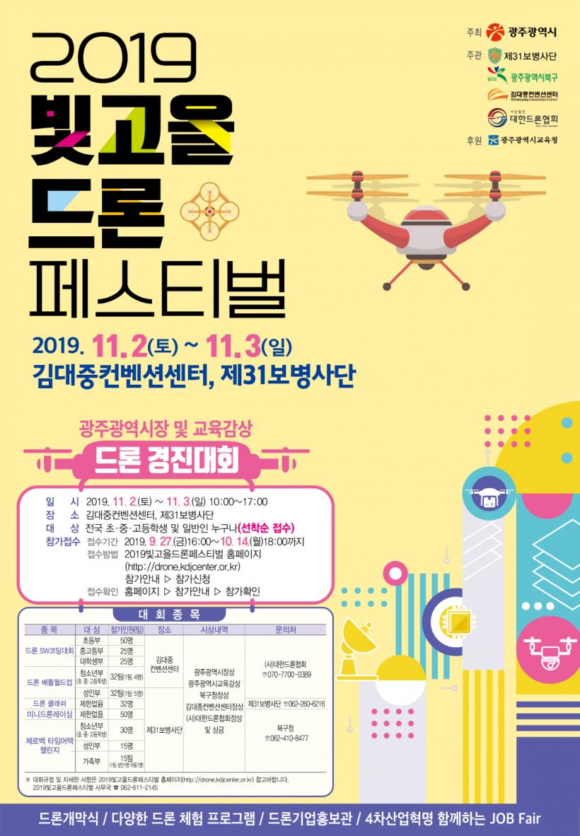 ±¤ÁÖ±¤¿ª½Ã´Â ¹Ì·¡ ½Å¼ºÀå»ê¾÷ÀÎ µå·Ð»ê¾÷ À°¼ºÀ» À§ÇØ ¿À´Â 11¿ù2ÀϺÎÅÍ 3ÀϱîÁö ±è´ëÁßÄÁº¥¼Ç¼¾ÅÍ, Á¦31º¸º´»ç´Ü¿¡¼ ¡®2019ºû°íÀ»µå·ÐÆä½ºÆ¼¹ú¡¯À» µ¿½Ã °³ÃÖÇÑ´Ù.