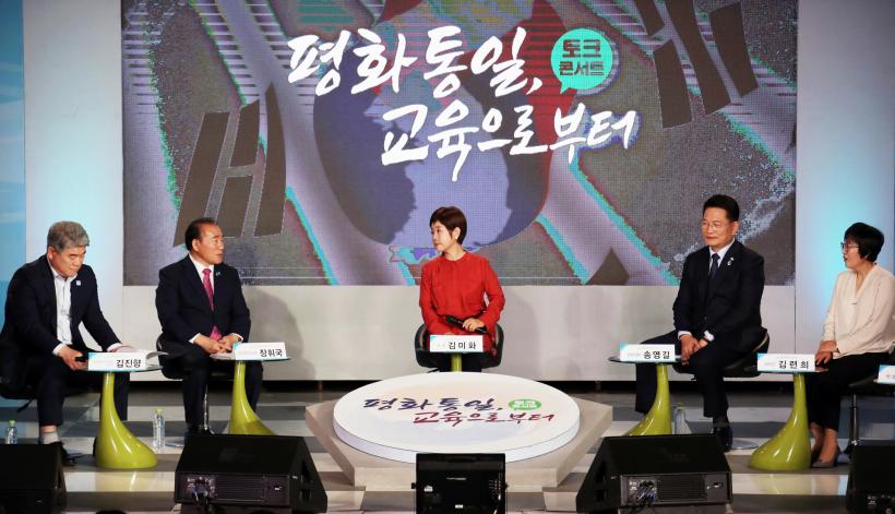 ÃÖ±Ù °æ»ö ±¹¸éÀ¸·Î Ä¡´Ý°í ÀÖ´Â ³²ºÏ°ü°èÀÇ ÇØ¹ýÀ» '±³À° ±³·ù'¿¡¼ ã±â À§ÇØ ¸¶·ÃµÈ À̹ø Æ÷·³¿¡¼´Â ´Ù¼Ò ¹«°Å¿ï ¼ö ÀÖ´Â ÁÖÁ¦ÀÎ ³²ºÏ±³·ù ¹®Á¦¸¦ ÀÚÀ¯·Î¿î ¡®ÅäÅ©ÄܼƮ¡¯ Çü½ÄÀ¸·Î ºÎµå·´°Ô ÁøÇàÇØ Âü¼®ÀÚµéÀÇ È£ÀÀÀ» ¾ò¾ú´Ù.