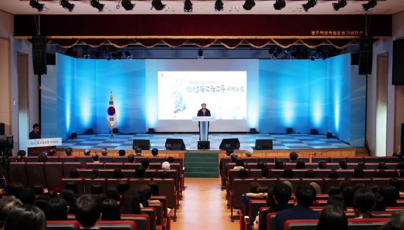 ±¤ÁÖ±¤¿ª½Ã±³À°Ã» Çö¼®·æ Á¤Ã¥±âȹ°ú °úÀåÀº "Çà»çÀåÀ» ã¾ÆÁØ ¸¹Àº ºÐµé°ú ´Ùä·Î¿î ÇÁ·Î±×·¥À» ÁغñÇÏ´À¶ó ¾Ö¾´ °ü°èÀÚ ¸ðµÎ¿¡°Ô °¨»ç¸¦ ÀüÇÑ´Ù"¸ç "À̹ø ³²ºÏ±³À°±³·ù ±¹Á¦ Æ÷·³ÀÌ ±¤ÁÖÀÇ Çлý°ú ±³»ç, ½Ã¹Îµé¿¡°Ô ±¤ÁÖÇлýµ¶¸³¿îµ¿ÀÌ °¡Áø Á¤ÀÇ¿Í ¿ë±â µî ±¤ÁÖÀÇ ¼ÒÁßÇÑ °¡Ä¡¸¦ ¹ÙÅÁÀ¸·Î Çѹݵµ ÆòÈÅëÀÏ È¯°æÀ» Á¶¼ºÇØ ³ª°¡´Â ¸¶Áß¹°ÀÌ µÇ±â ¹Ù¶õ´Ù"°í ¸»Çß´Ù.