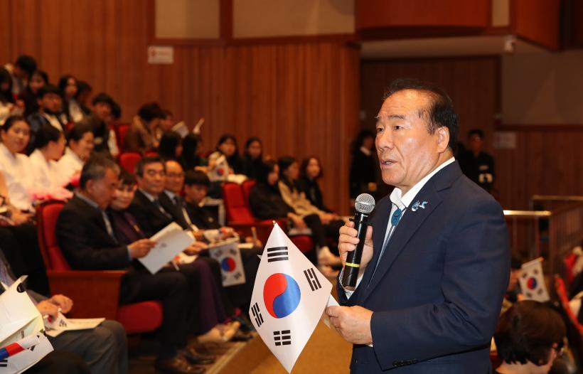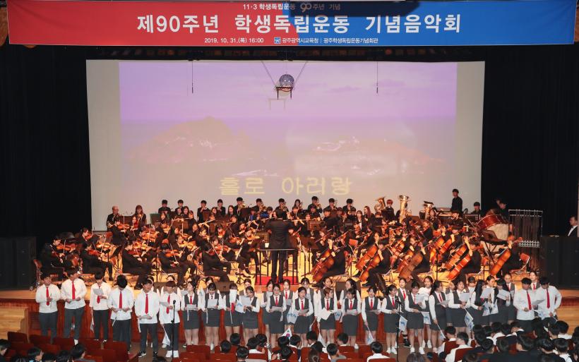 [°ø°£´º½º = ±è¼ö±Ù±âÀÚ] ±¤ÁÖÇлýµ¶¸³¿îµ¿±â³äȸ°ü(°üÀå ¹Úġȫ)ÀÌ Áö³ 10¿ù 31ÀÏ ¿ÀÈÄ 4½Ã ±¤ÁÖÇлý±³À°¹®Èȸ°ü °ø¿¬Àå¿¡¼ °³ÃÖÇÑ ¡®Çлýµ¶¸³¿îµ¿ 90Áֳ⠱â³äÀ½¾Çȸ-90³â ÀüÀÇ ÇÔ¼º, Àü±¹À» ³Ñ¾î ÅëÀϷΡ¯°¡ Çлý°ú ±³Á÷¿ø, ÀϹݽùΠµî 540¿© ¸íÀÌ Âü¿©ÇÑ °¡¿îµ¥ ¼ºÈ²¸®¿¡ ¸¶¹«¸® µÆ´Ù.