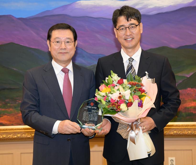 [°ø°£´º½º = ±è´ë¿µ±âÀÚ] ±¤ÁÖ±¤¿ª½Ã´Â ¡®ÀÌ´ÞÀÇ(10¿ù) °ø¹«¿ø¡¯À¸·Î ÀÏÀÚ¸®Á¤Ã¥°ü½Ç Á¤Á¾È¯ ÁÖ¹«°üÀ» ¼±Á¤Çϰí 4ÀÏ 11¿ù Á¤·ÊÁ¶È¸¿¡¼ ½Ã»óÇß´Ù.